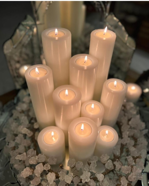 - 🌿 همنشینی با شمعهای قلمی و دکورهای طبیعی: ترکیب گل خشک، نور ملایم و شمعدان پلیمری، فضایی رؤیایی خلق میکند.